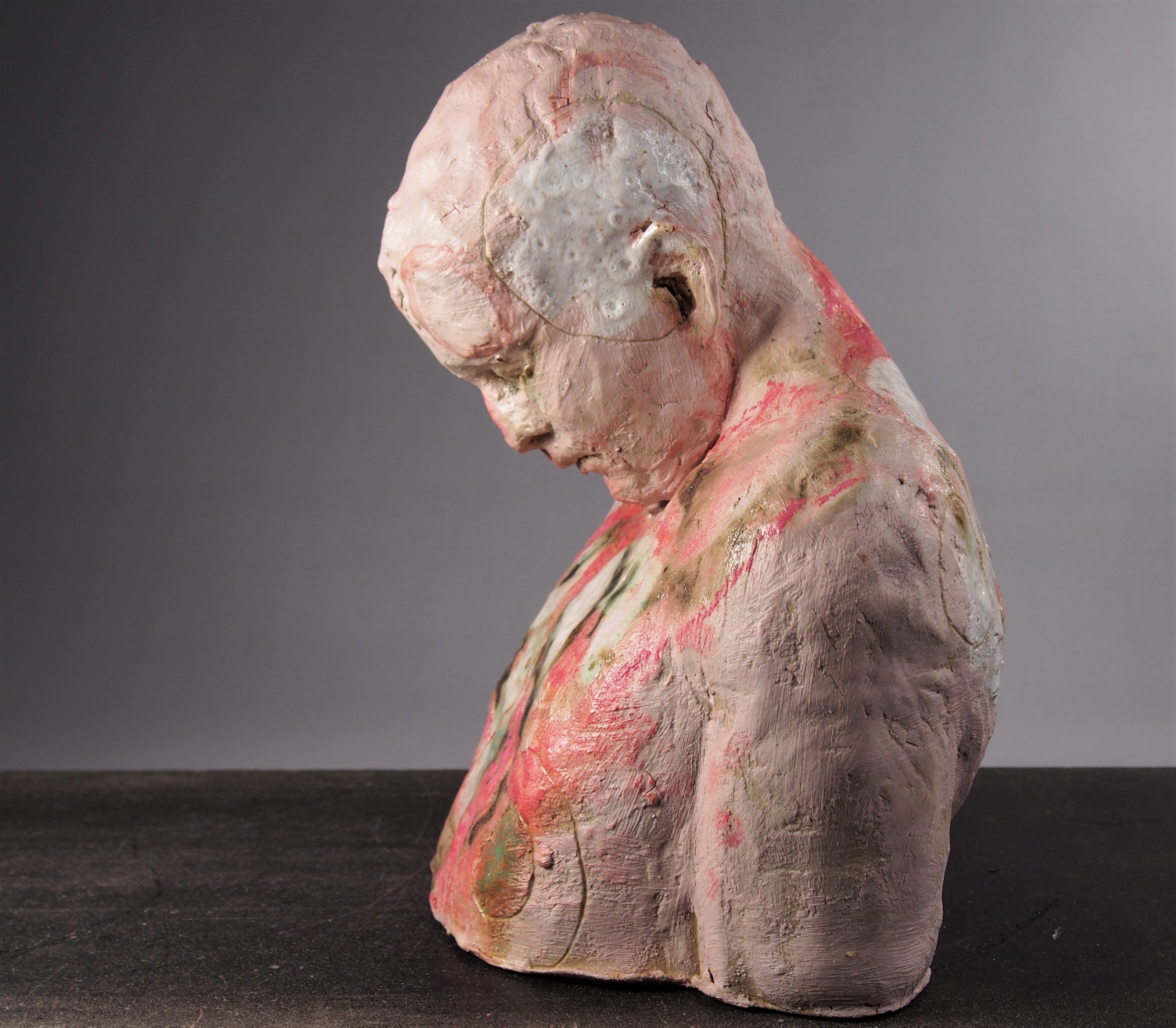 Sharon uses clay as a sculptural medium; a 3D canvas. Preliminary sketches in 2D and drawings from life inform the work, helping ideas evolve. Once in the workshop however, when the clay is being worked with directly, the sculpture is allowed to reveal itself as it is worked with: a conversation with clay.