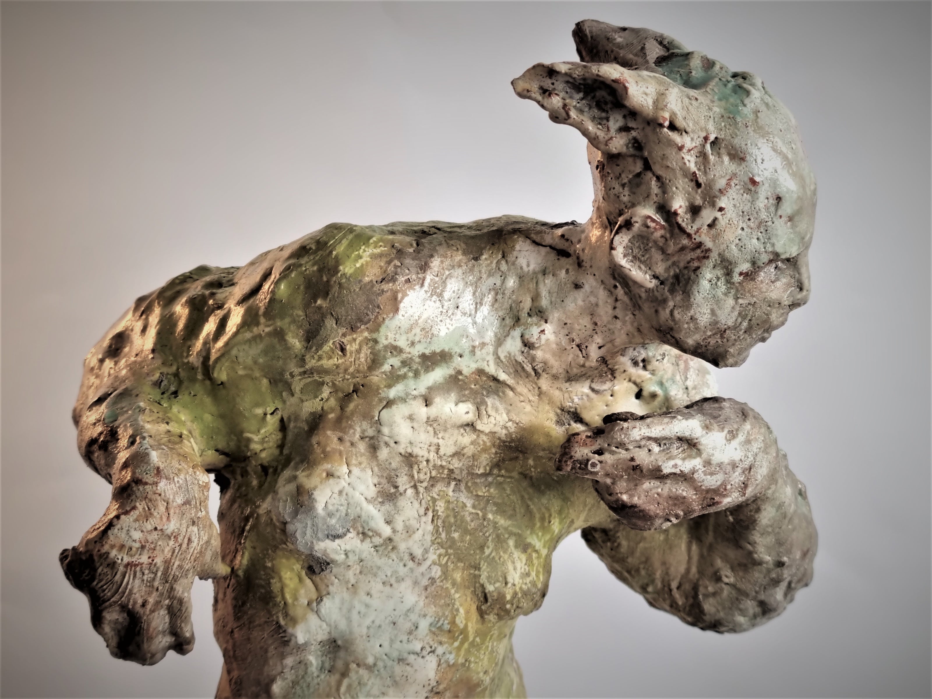 Sharon Griffin lives in Shropshire and is a figurative artist who specialises in ceramic sculpture. Directly inspired by the woodland, where she often explores places in which to ‘breathe...the textures, the smells, the secret spaces all provide a kind of awakening’. Sharon uses the human figure to help communicate a sense of deeper meaning within humankind and of her own experience of being a woman. The sculptures represent a state of being; internal struggles of love, loss, displacement, vulnerability and strength.