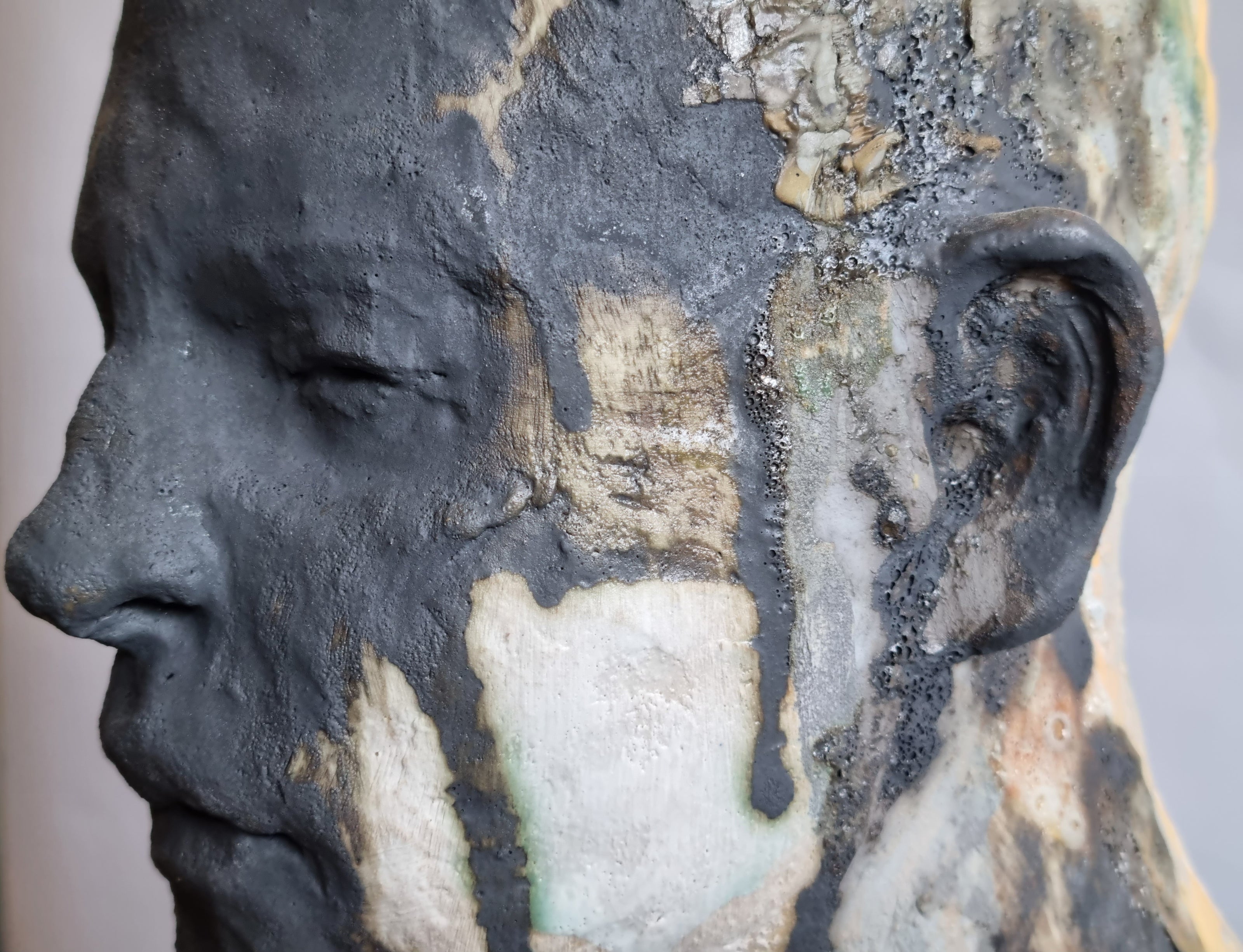 "My ideas, feelings and thoughts are directly conveyed into the clay using the minimum of tools. The clay picks up every gestural mark, mirroring me... I push it around. The clay is almost part of me. It is my friend. A connection. A way of self-expression without words."