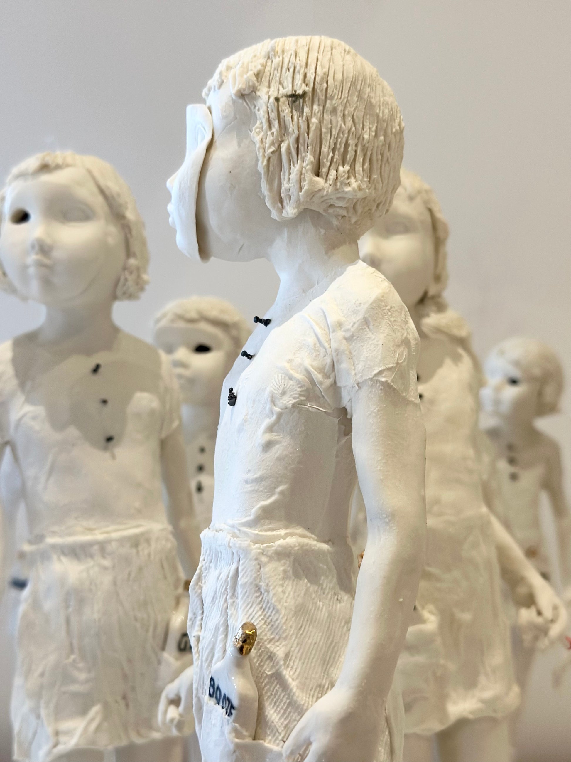 Porcelain, layered oxide, slips, and pins on a Jesmonite base